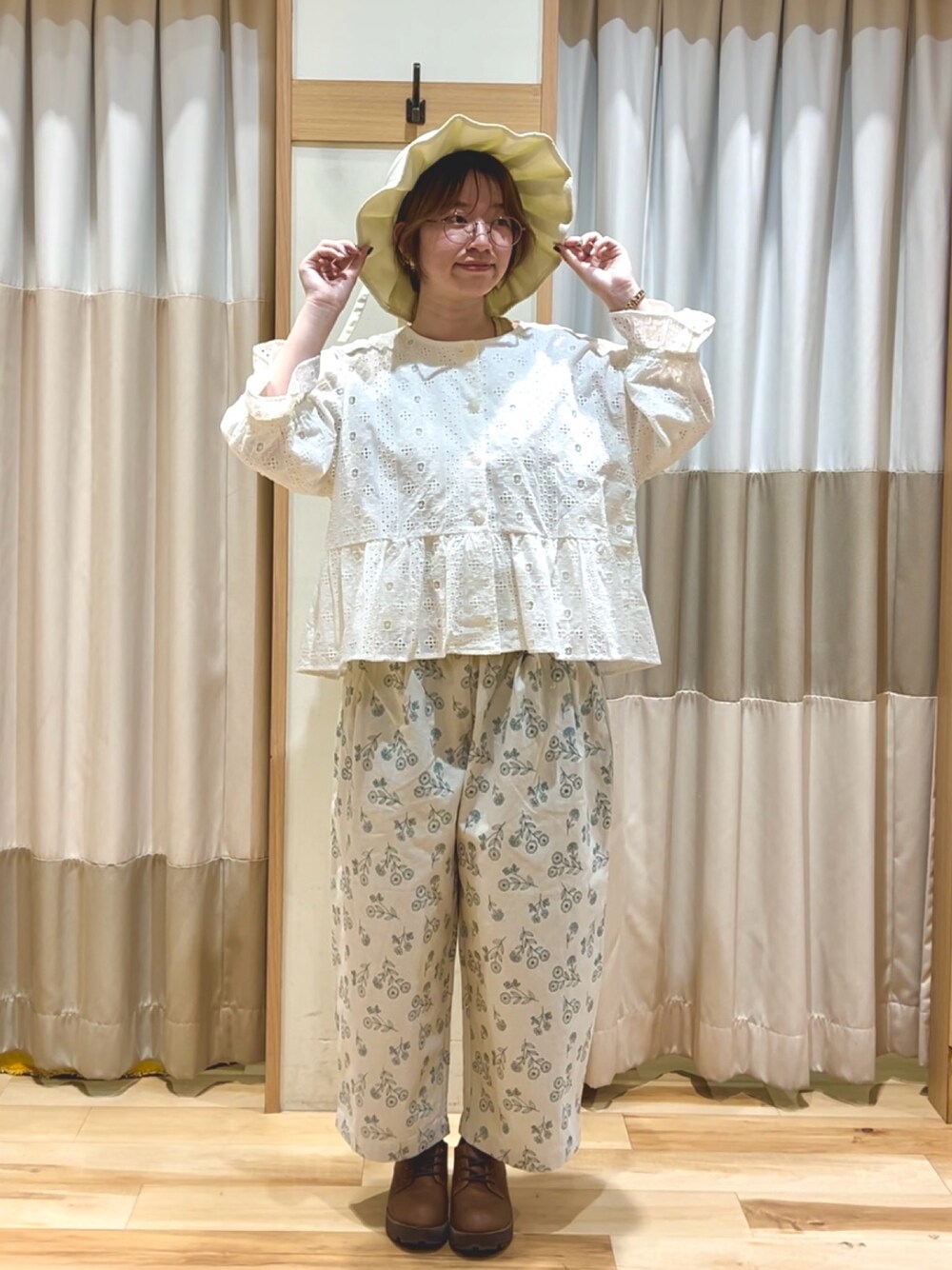 花柄刺繍のストレートパンツはウエストがゴムで楽ちんな上に形も綺麗に着ていただけます! オーバーレースジャケットと合わせてガーリーに🤍