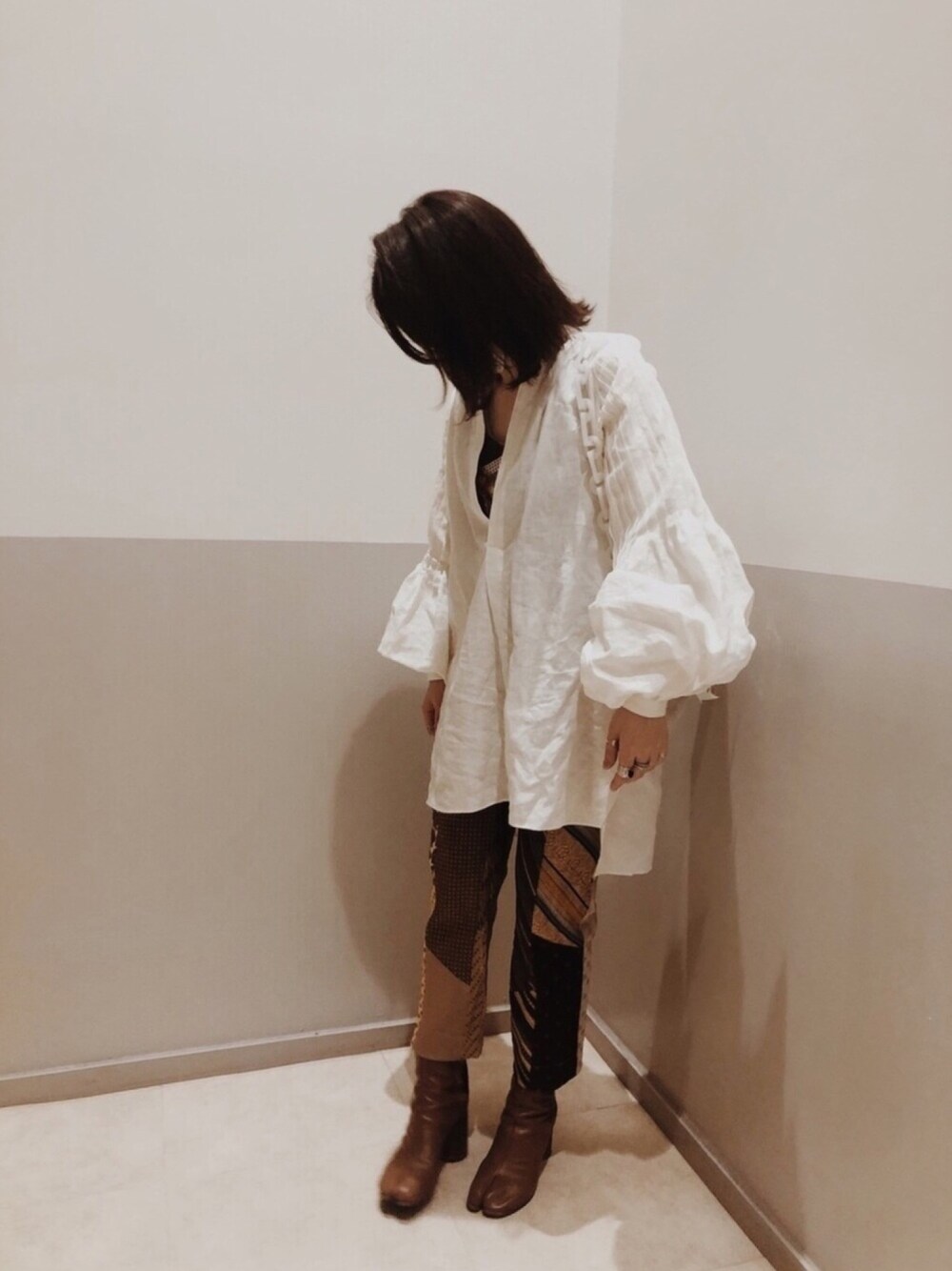 めめのショルダーバッグ「mame スクエアチェーンバッグ」を使ったコーディネート
