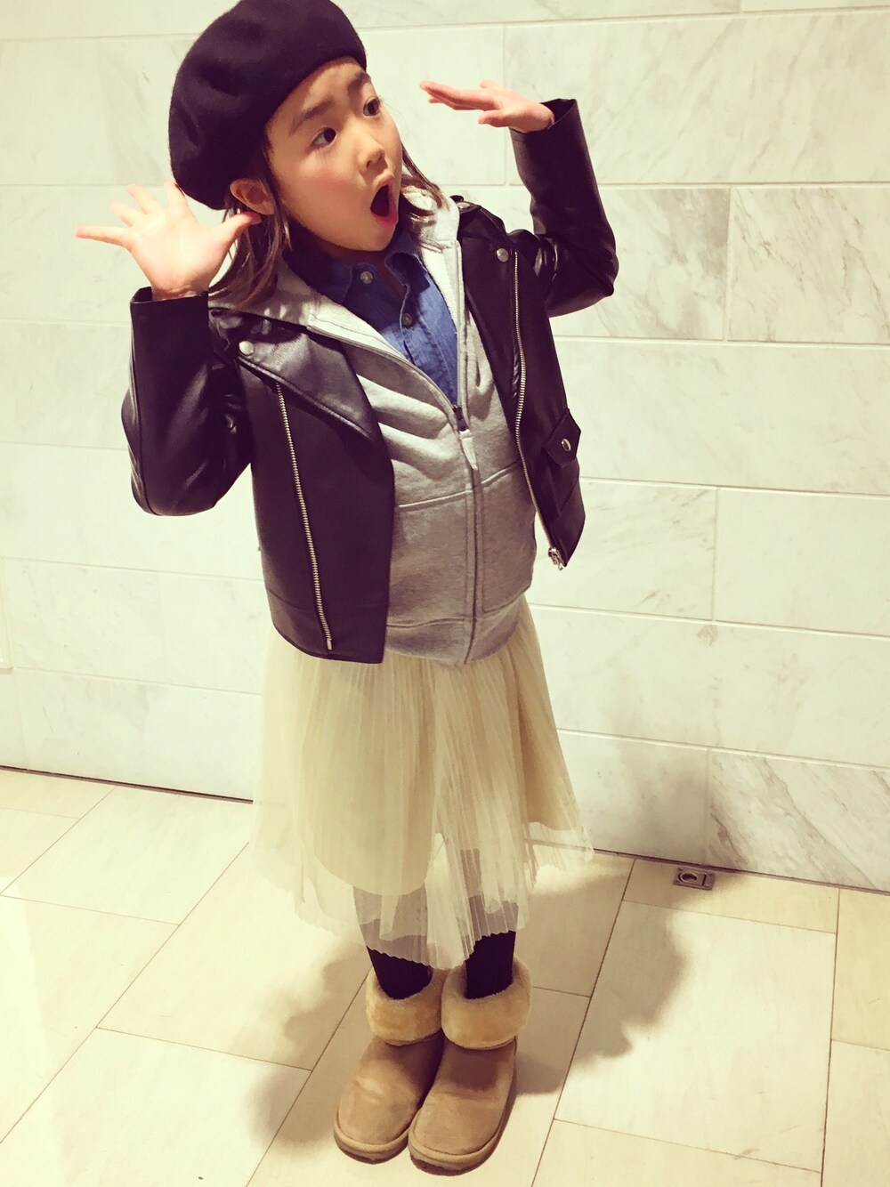 何に驚いてるかは不明な娘っ子😆😆 今日もプチプラコーデ❤