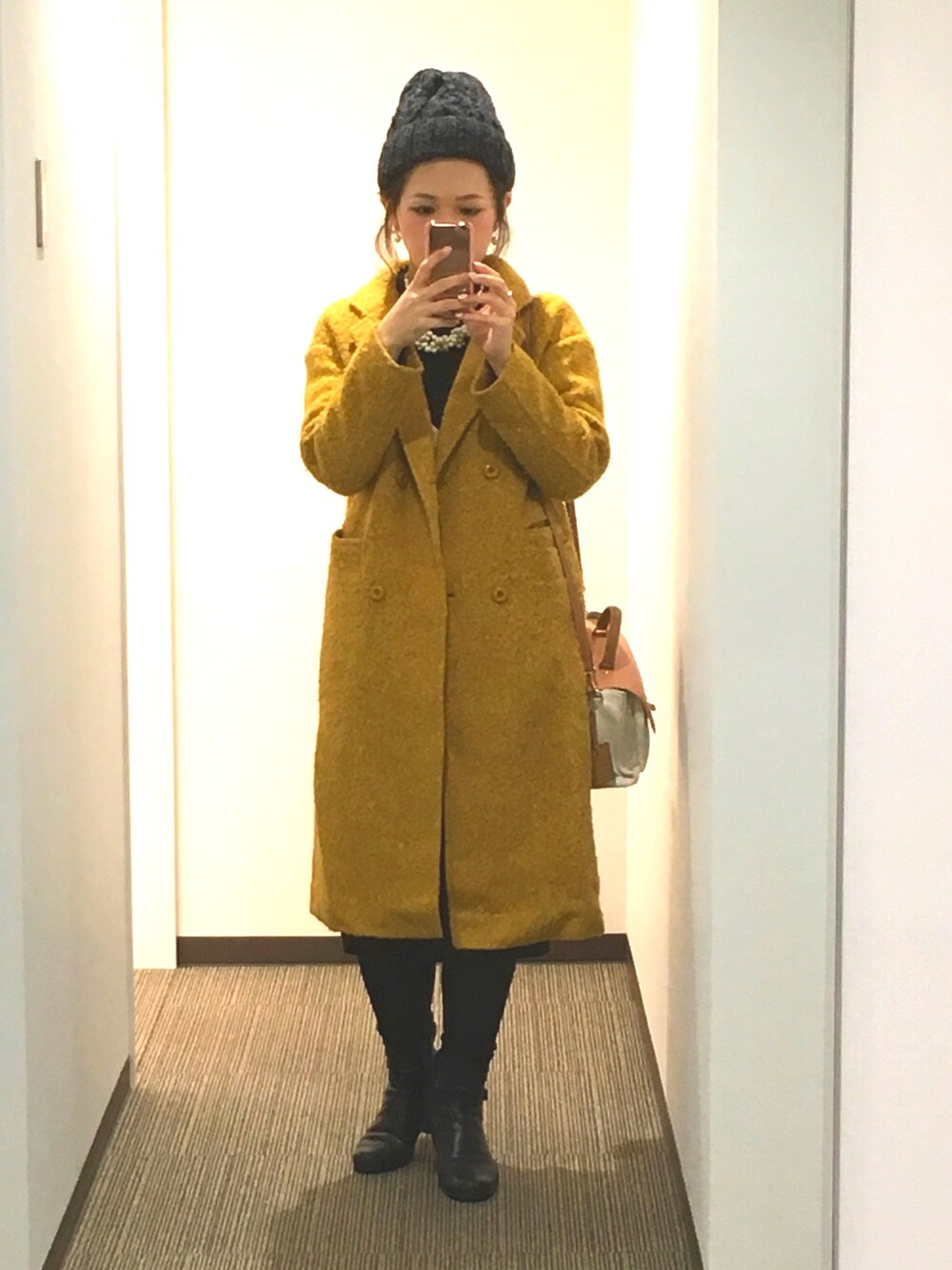 イエローチェスターコートで寒さ対策バッチリ‼︎