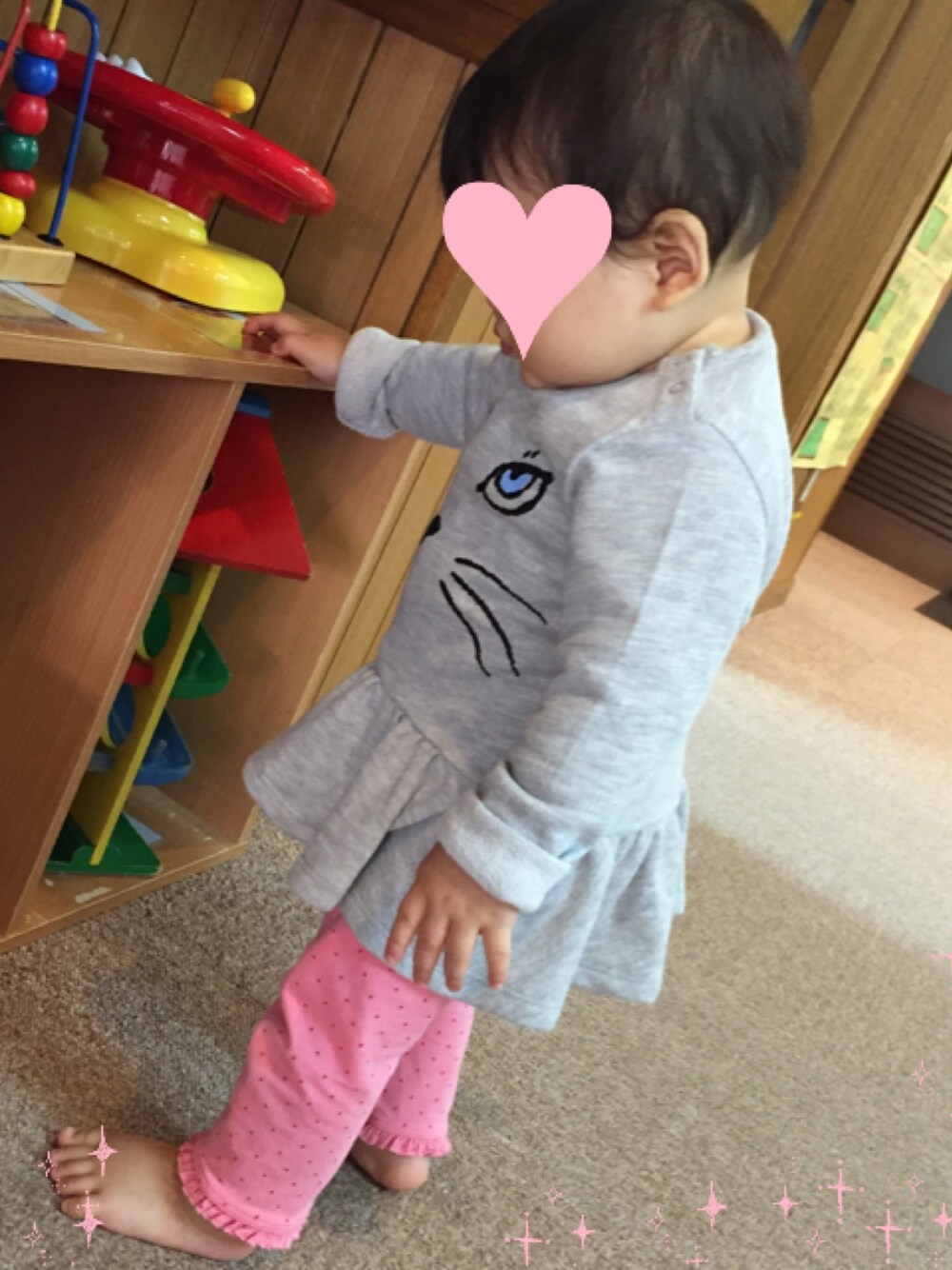 プティマインのネコちゃんは90★大きいので袖を二回折り返し(^_^;)丈はちょうどいいかな?チュニック風に着られる^ ^
