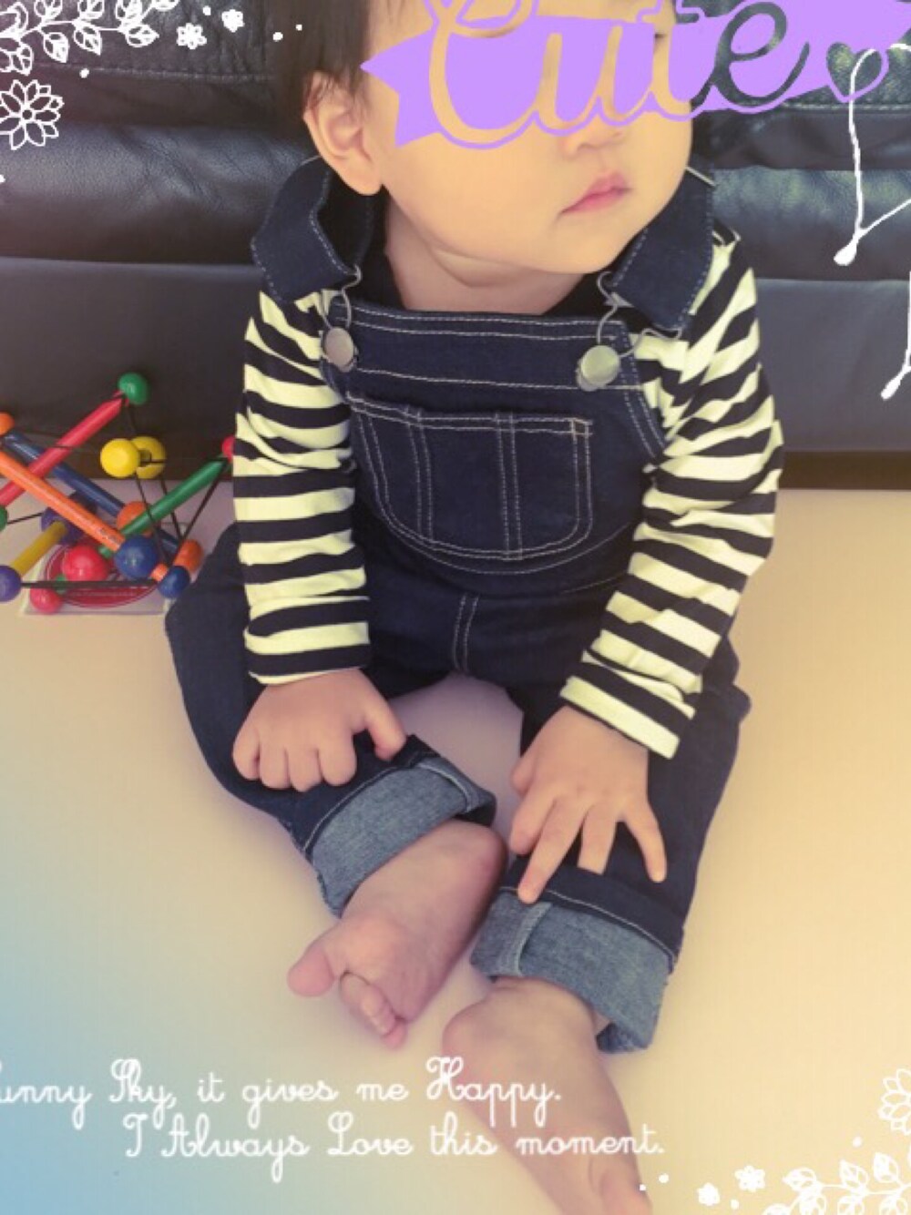 プティマインのオーバーオール、サイズ80でギリギリじゃないかと心配していたけど…まだ少し大きいぐらいだった(^_^;)肩ベルトで調節できるし、長く着られそうかな?けど、男の子みたいになっちゃった!