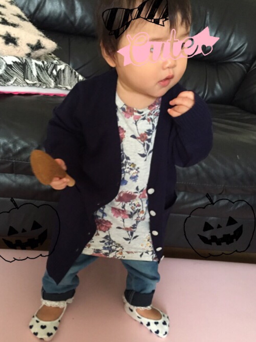 今日は1歳の誕生日❤︎お祝いは明日なので、おめかしも明日ね(^_^;) 予約していたプティマインのロングカーディガンが届いて早速❤︎サイズはSでちょっと大きい!袖が気になるみたい(^_^;)けど、小さい子のロングカーディガンって可愛い〜❤︎
