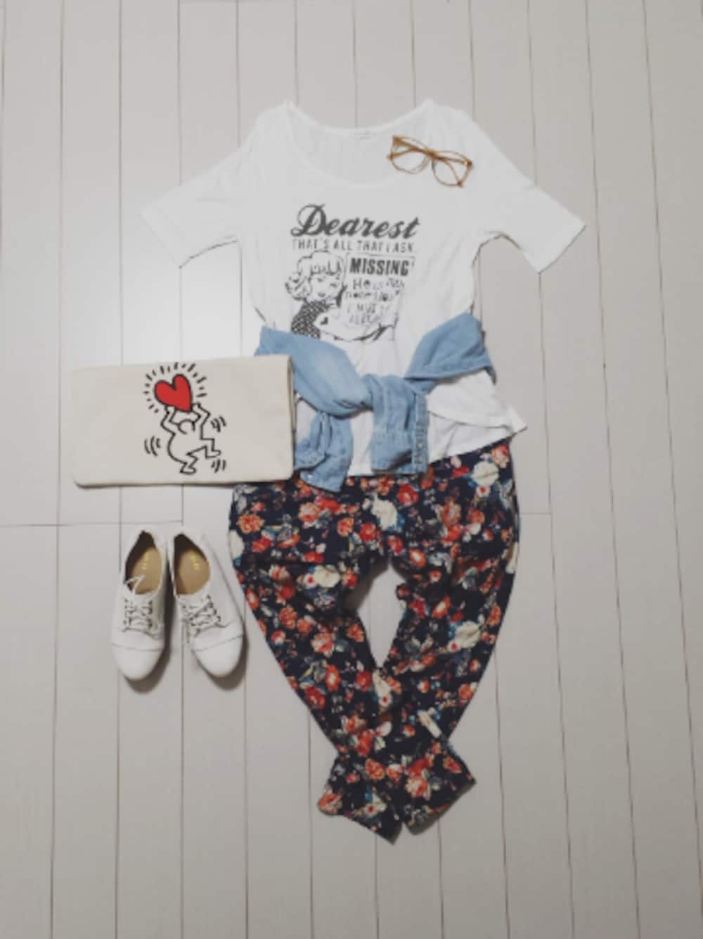 ひらめのクラッチバッグ「BY×keith haring 別注クラッチバッグ」を使ったコーディネート