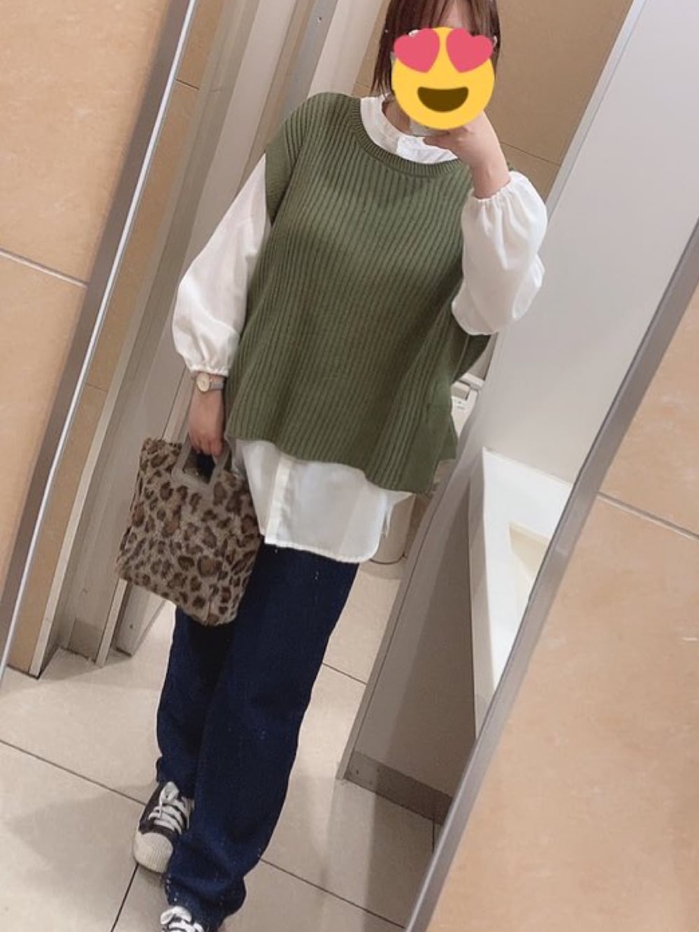 10月中旬のコーデ 珍しくデニム履いてる!!(笑) 普段ほんま仕事以外パンツ履かない(。•́ωก̀。) デニムとかパンツ苦手💦