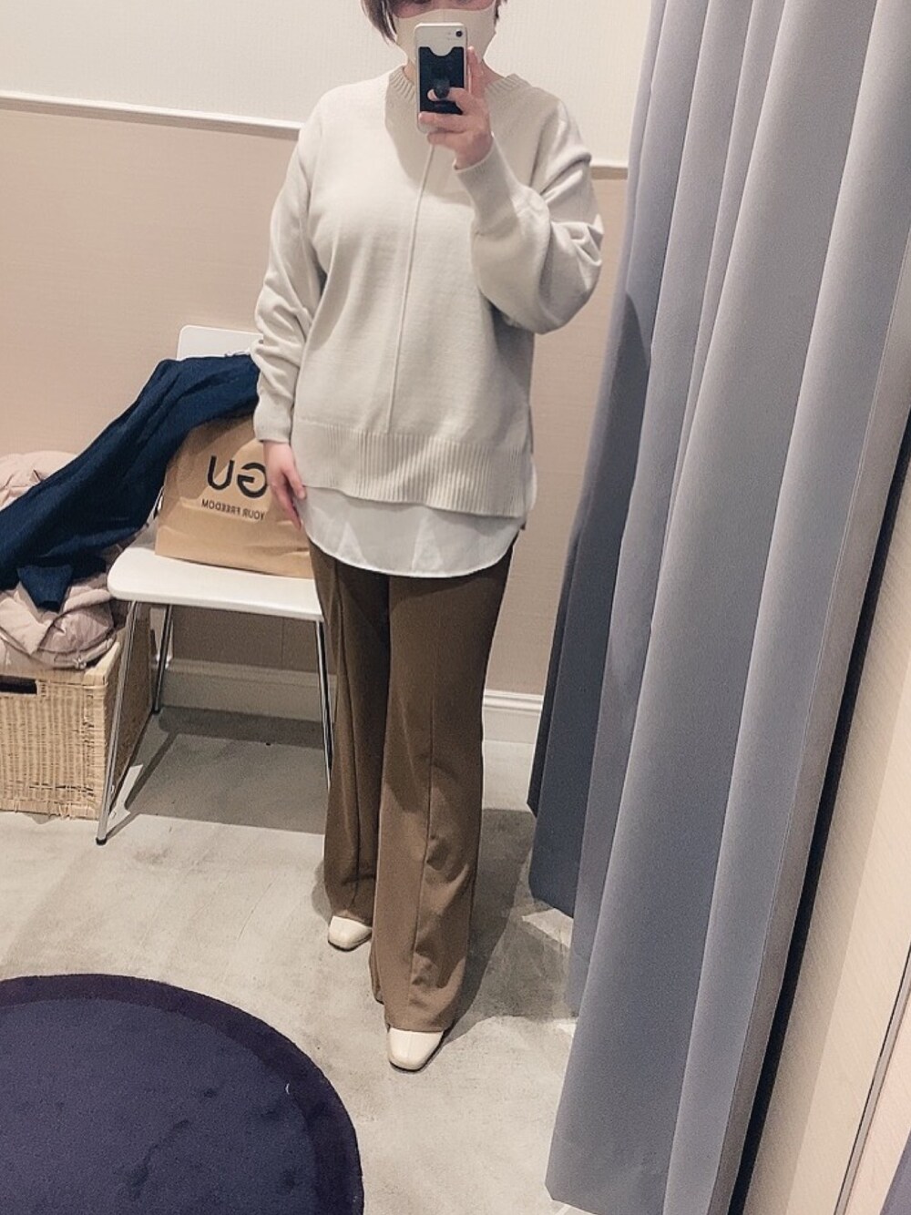 今更コーデ *GUのサイトでトップス調べたけど 画像出てこんかった。 必死に購入履歴から探したよ(˘•ω•˘ ) ◆シャツテールコンビネーションセーター ライトグレー パンツ、ブーツは前の記事の着回し♪