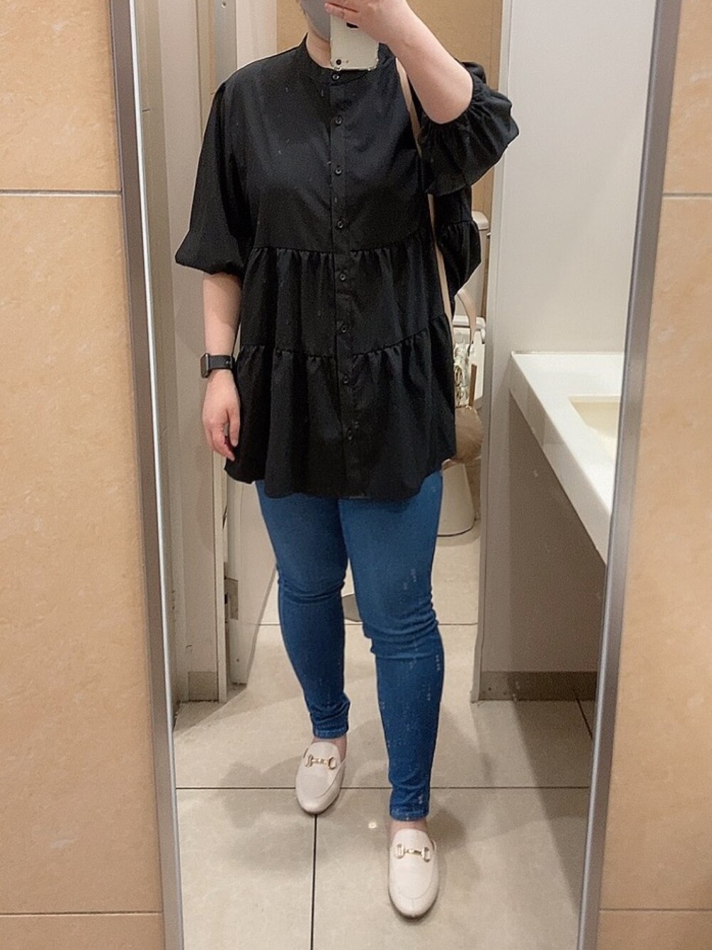 #プチプラ #過去コーデ #低身長 #ぽっちゃり デニムのサイズ間違えて太ももパツパツww #骨格ストレート ティアード素材苦手だった