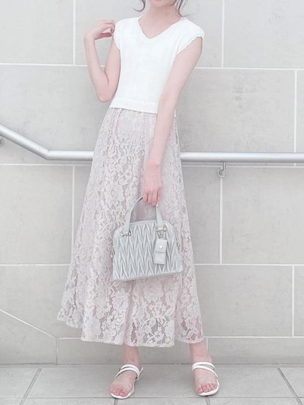 大人気のニットワンピース❤︎足元のレースの透け感がおしゃれです✨ニットワンピースなので着心地も良いです🥰