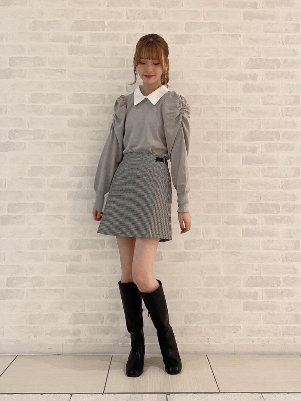 マジェのスカパンは脚が細見えするのが嬉しいポイント💌ロングブーツを合わせて今年のトレンドぽいコーデです💐