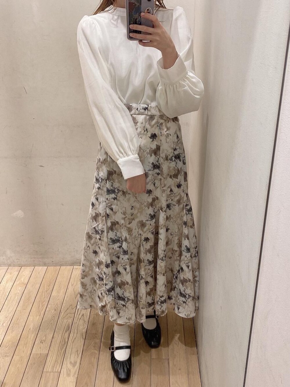 王道きれいめコーデ❤︎スカートのシルエットもふわっと広がる形がお洒落感アップ✨