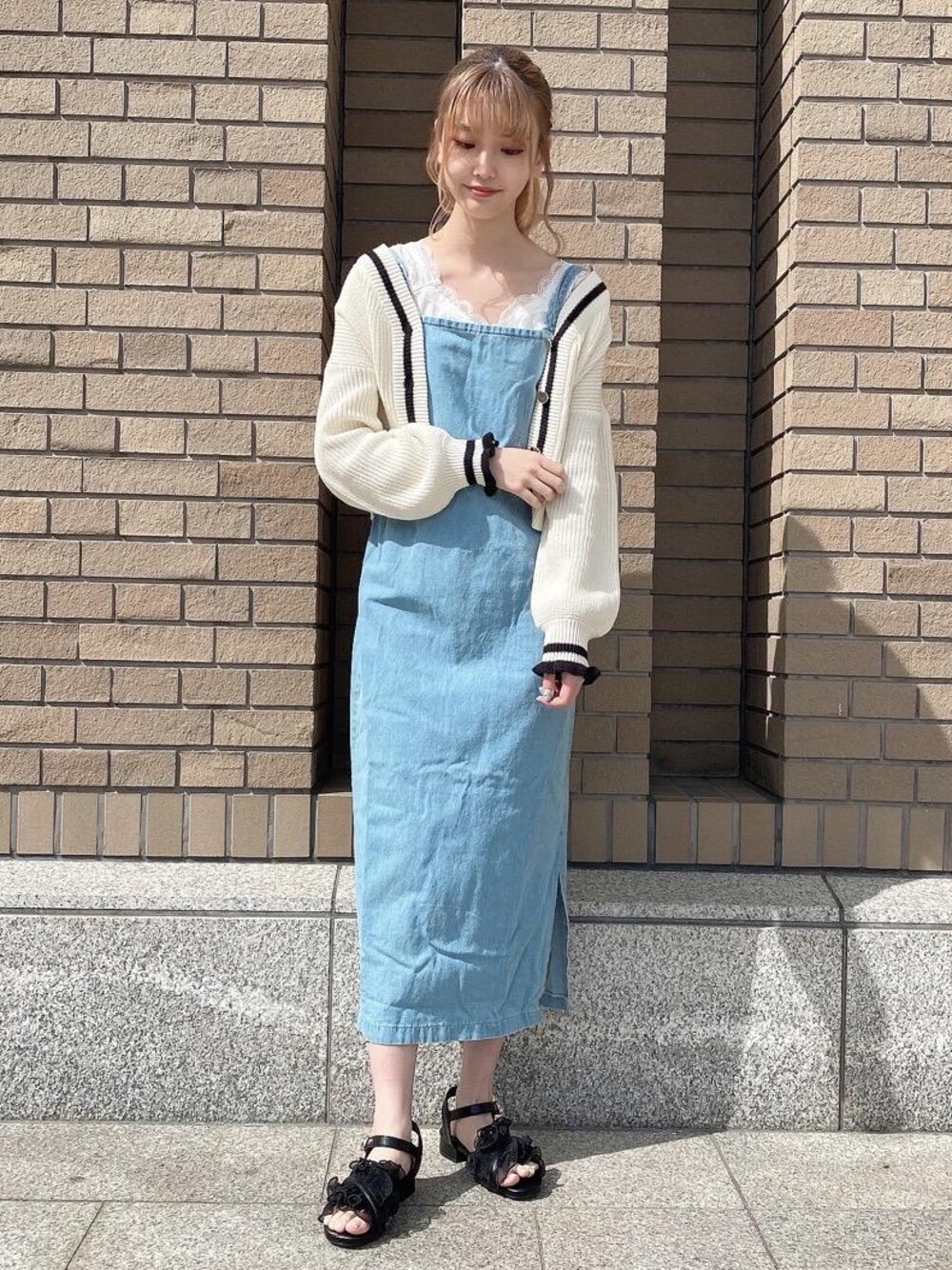 めめのカーディガン/ボレロ「バイカラーラインニットカーディガン」を使ったコーディネート