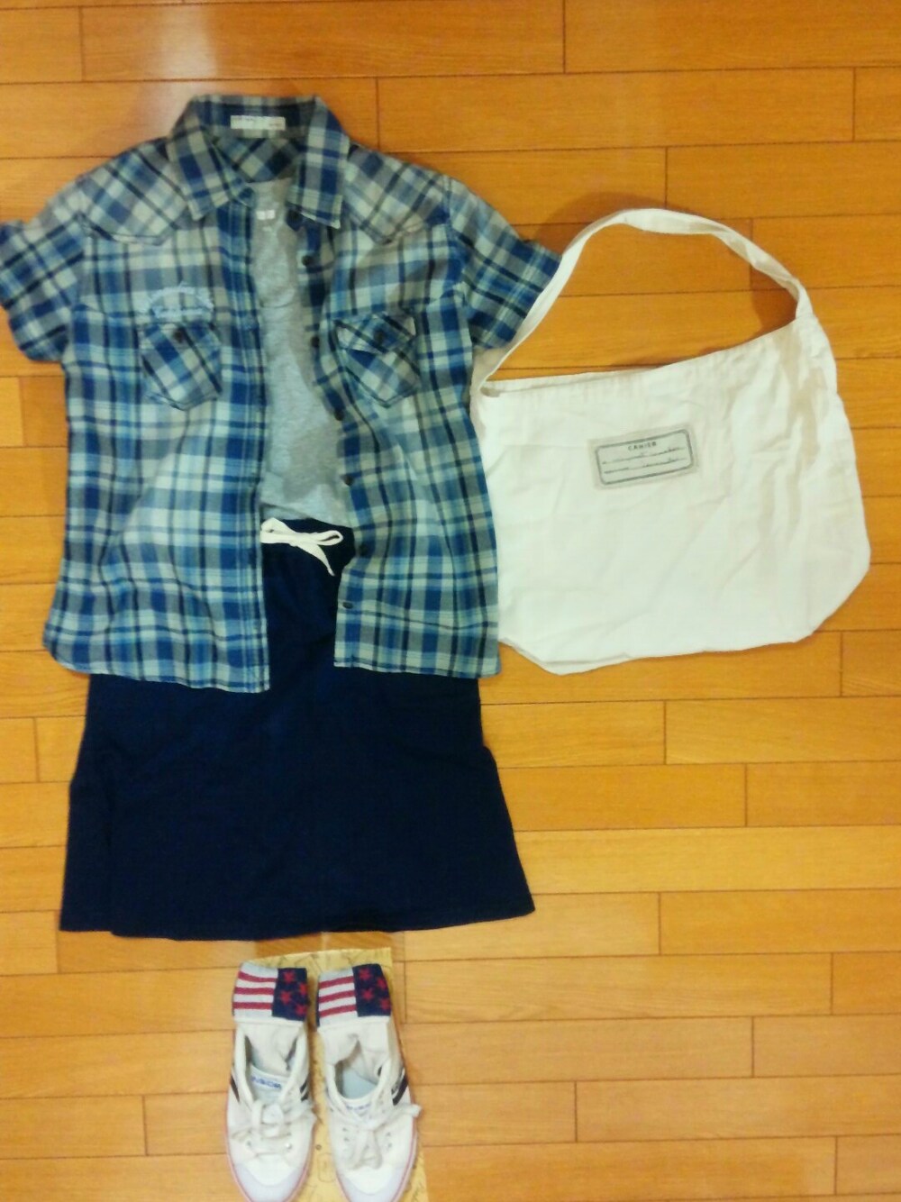 今日も朝から暑い~! 今週も今日で終わり。 お仕事頑張る☆ シャツ*AVIREX Tシャツ*UNIQLO スカート*sm2