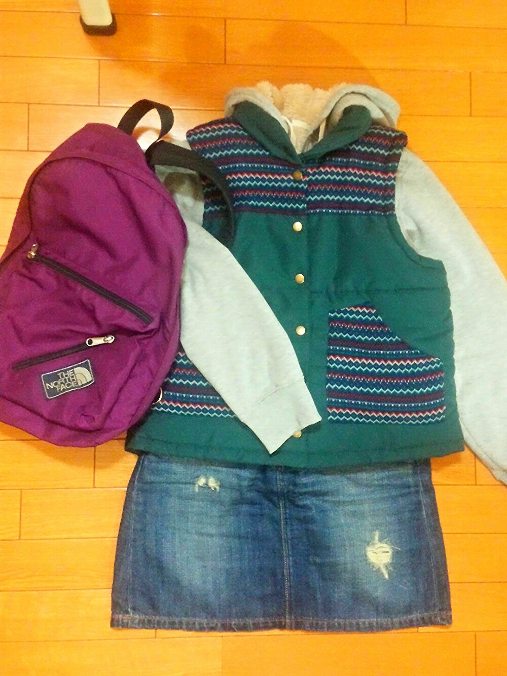 グレーのもこもこパーカーはg.u.*ベストは雑貨屋さん♡