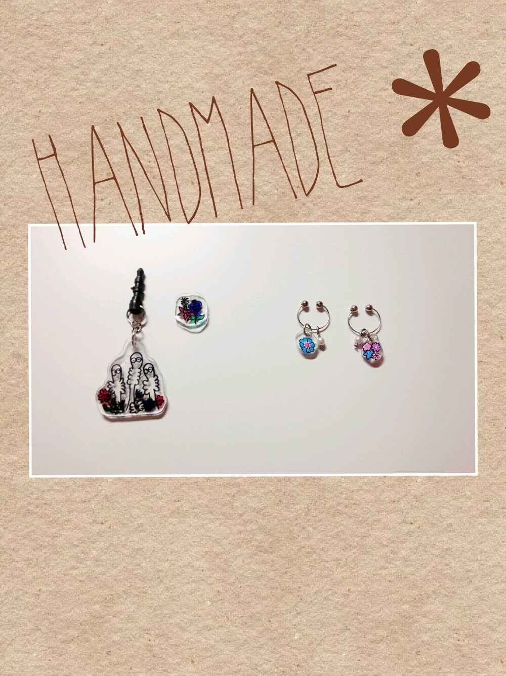 ずっと作ってみたかった プラ板アクセサリー* 今回はニョロニョロのイヤホンジャックと お花のイヤリングを作ってみました♡
