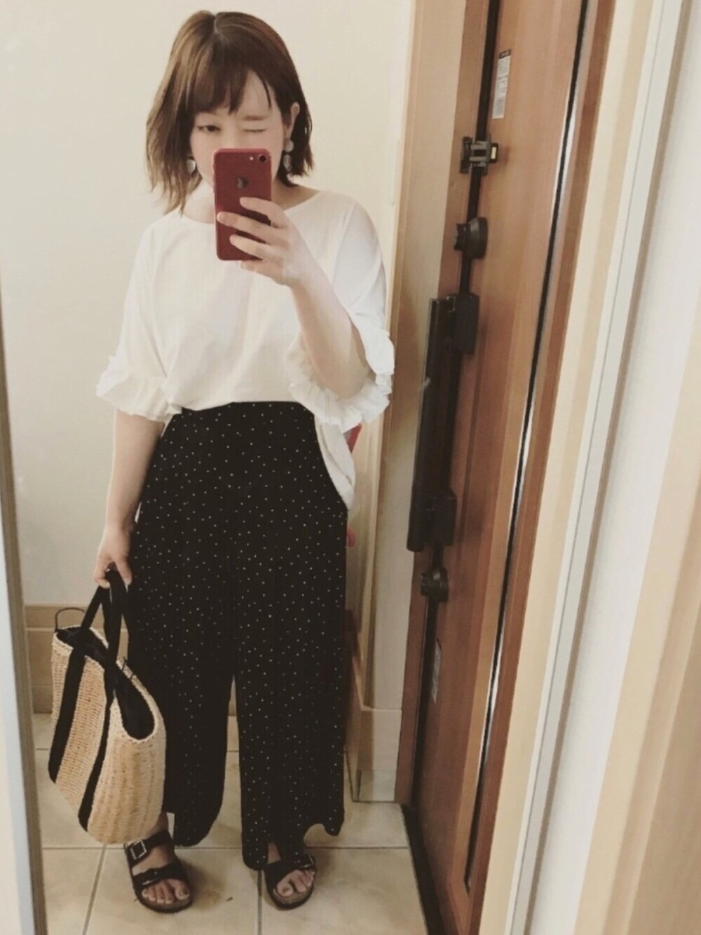 今回はearthのセールで1000円だったカットソーとHONEYSのドット柄ガウチョパンツです。カットソーは白だけど透けにくくて良かった♫袖がひらひらして可愛い! ドット柄のガウチョパンツはさらりとしていて、低身長でも着れるし気持ちいい履き心地でした。