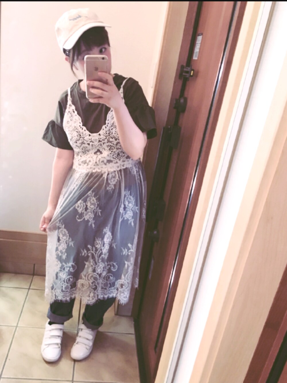 MOCAのレースキャミワンピを表に出して着てみました!!口コミで下着みたいだから、着るの勇気いるって書いてたけど、全然大丈夫😊✨