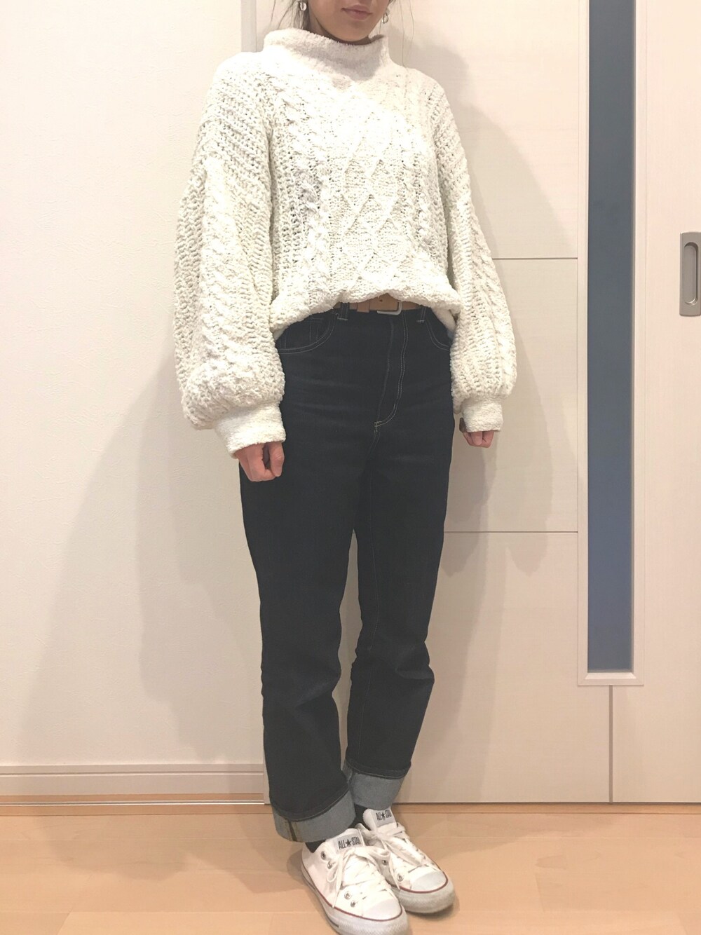 いつかのコーデ☺️💓 マシュマロみたいな肌触りのニット💖💖 まだまだ寒いので手放せません👋 見て頂き有難うこざいます💖