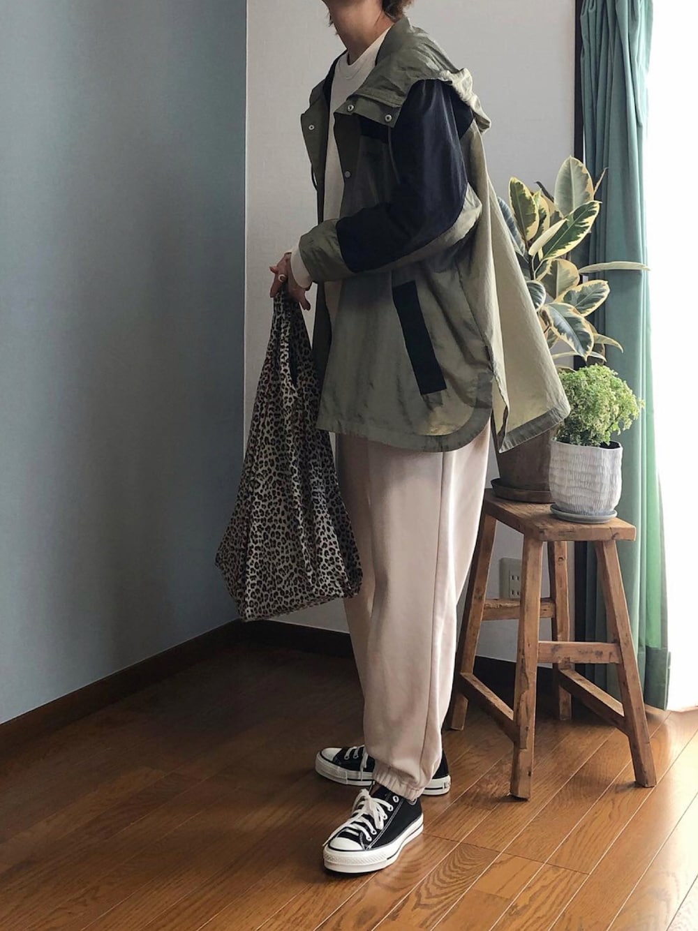 みーのナイロンジャケット「【KANGOL EXTRA COMFORT(カンゴール エクストラ コンフォート)】配色切替ナイロンライトジャケット」を使ったコーディネート