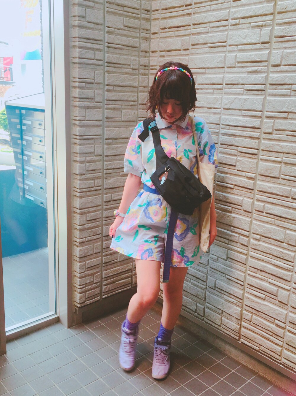 原宿のCHICAGOで買った、オールインワンお気に入りです🌈 マルチカラーでお花柄で夏っぽくてかわいい! 袖もパフスリーブみたいで最高です(∩ˊᵕˋ∩)・*