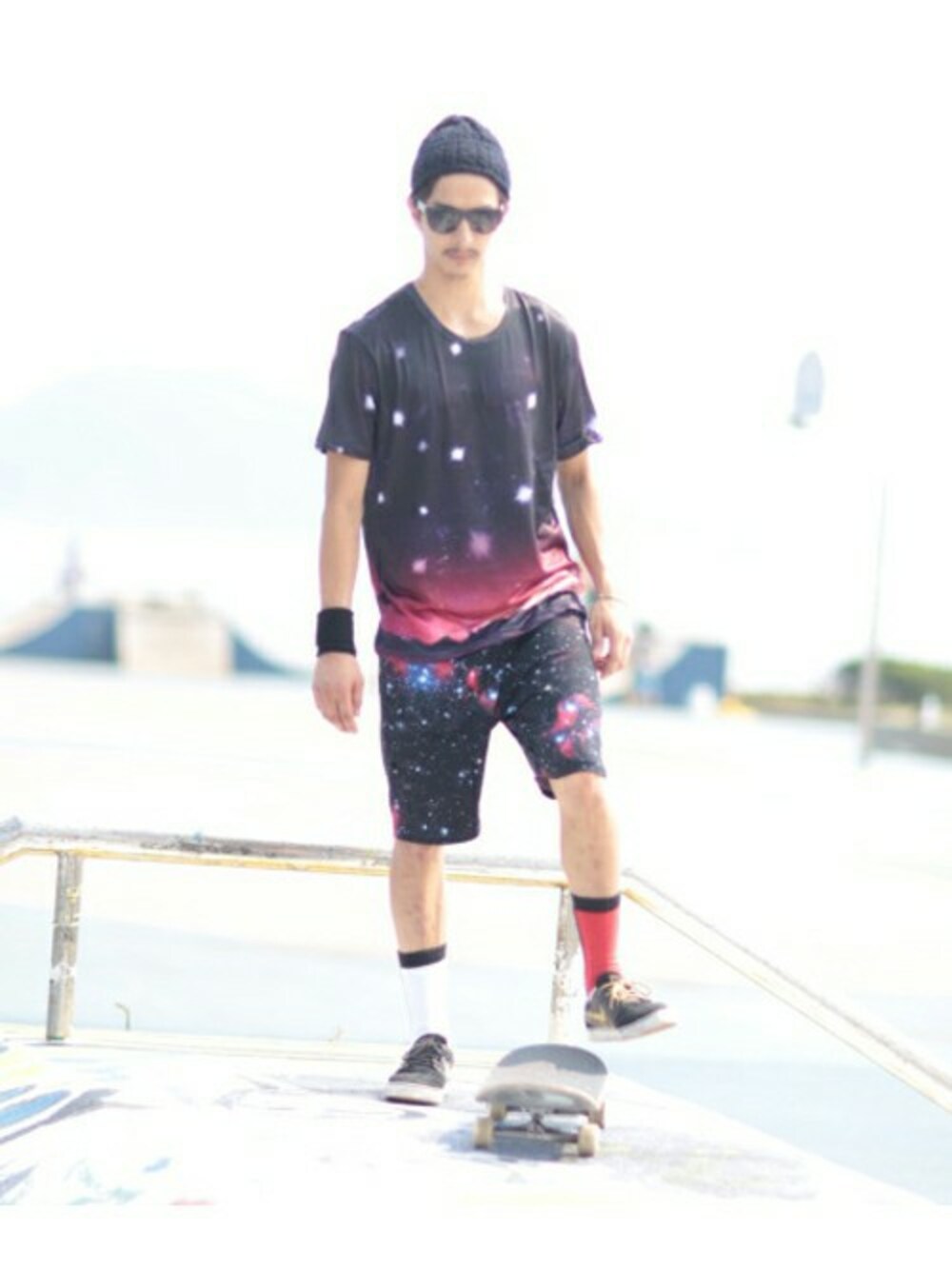MEMENTISM 原宿本社のTシャツ/カットソー「PE-38 ナイトスカイグラフィックTシャツ」を使ったコーディネート