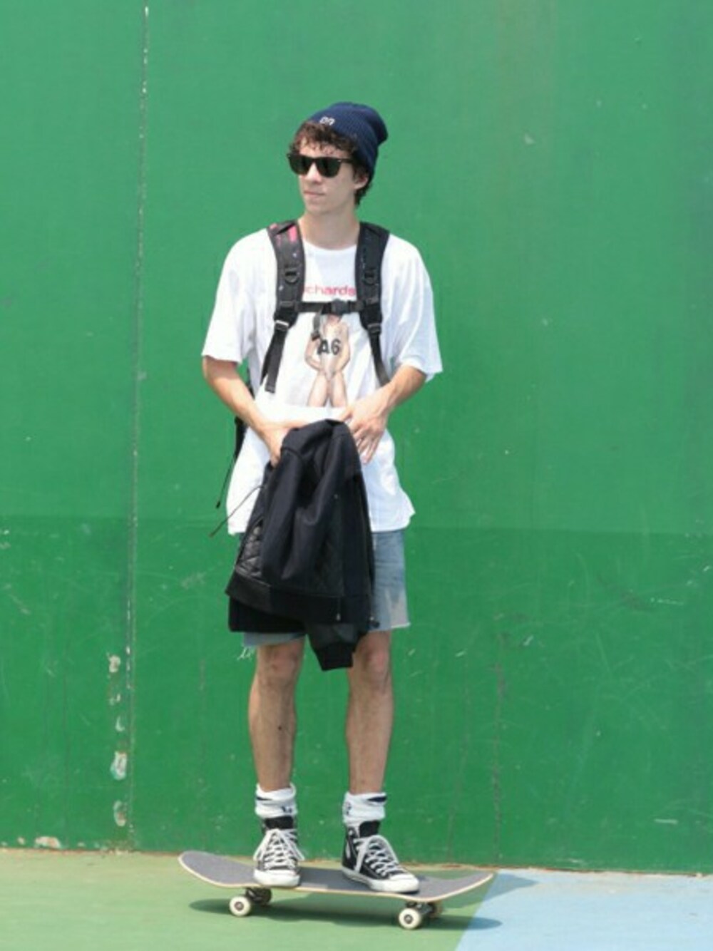 MEMENTISM 原宿本社のバックパック/リュック「THE WORLD-α レザー切り替えグラフィック センタースタッズリュック」を使ったコーディネート