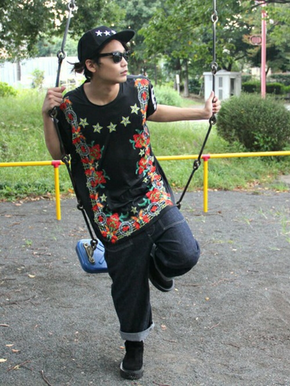 オーバーサイズシルエットのビッグTシャツを使ったコーディネートのご紹介です。 足下にはボリューミーなラバーソールシューズ。 ストリート感のあるコーディネートに仕上げました。
