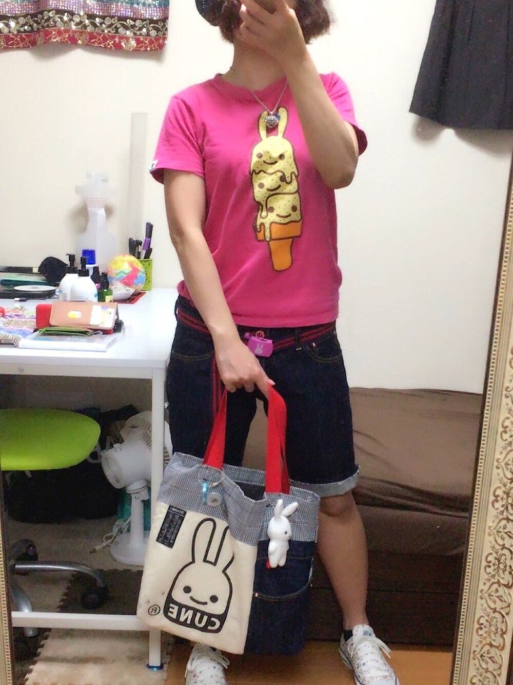 WEAR初投稿❣️ MENSっぽくピンクなCUNEまみれコーデ。 CUNEデニムとトートバッグを解体してリメイクしたトートバッグがお気に入り٩(๑❛ᴗ❛๑)۶ 写真の撮り方、場所、工夫したひ。