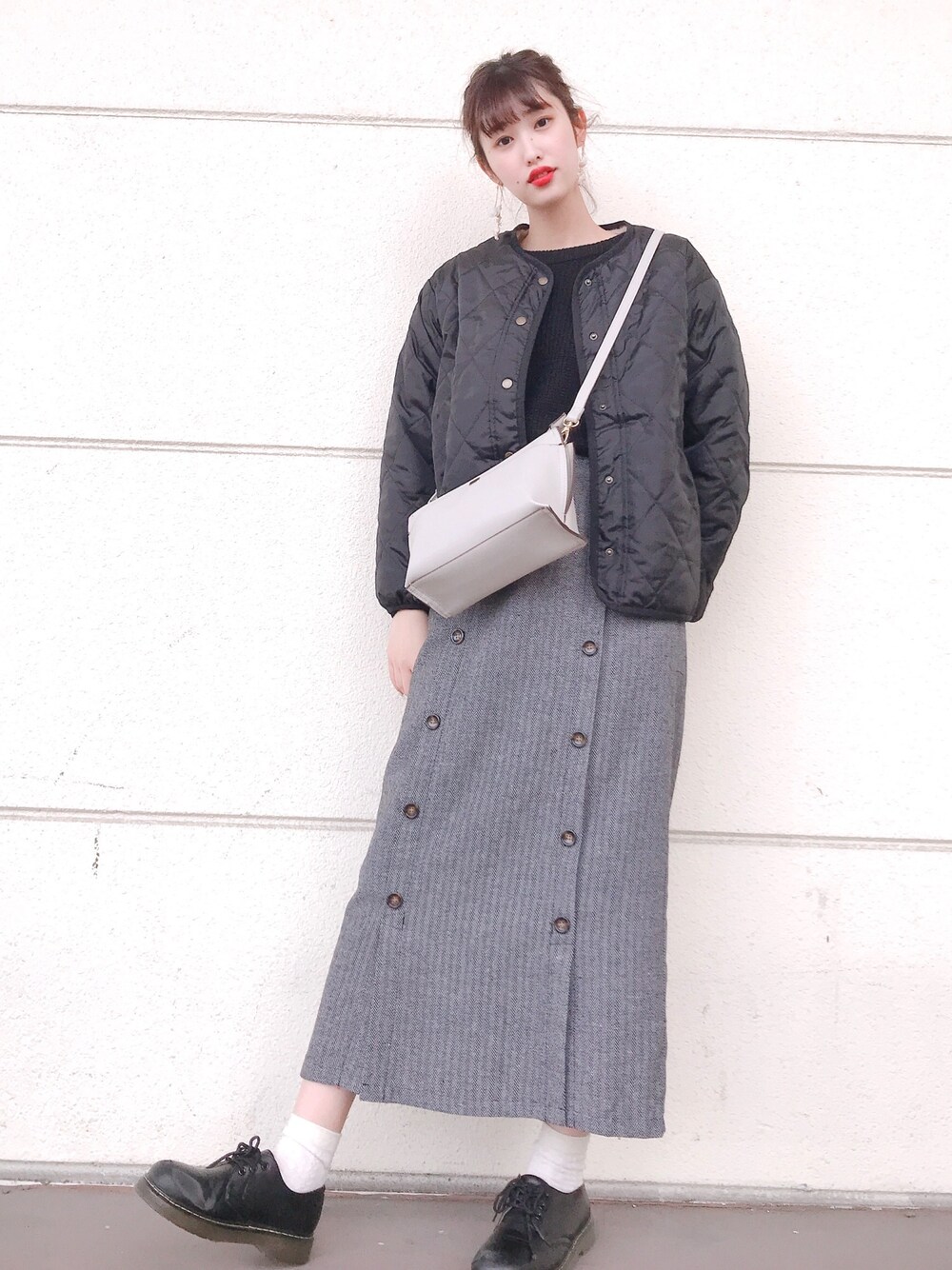ブラックのワントーンコーデ☺︎❤︎ バックを白にすることで黒のワントーンコーデでも重たくなりすぎずに着ていただけます☀︎