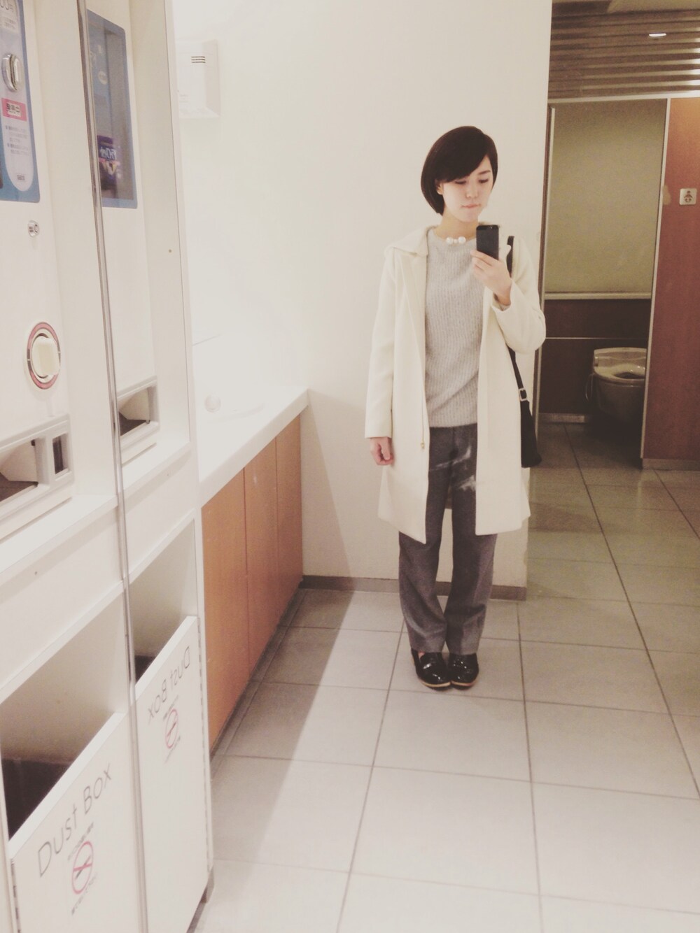 22歳になりましたの日。モテを意識しホワイトのアウターです。コートの中はモヘアニットにウールスラックスでグレーコーデ。