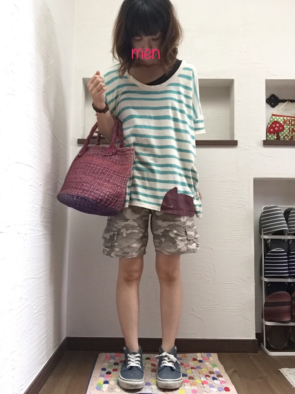 今日はプールの引率に行く予定なので、着替えのしやすいラフな格好です^ ^ このショートパンツは、昔にUNIQLOで買ったカーゴパンツをジョキジョキ切って、自分好みの丈にした物です。 背が低いと、結構手直し入ります(笑) 見てくださりありがとうございます😊