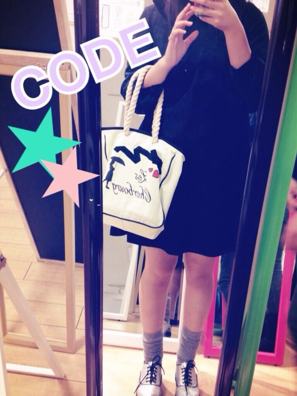 たまにはこんな格好もします! ワンピースは紺と濃い緑。 値段は8000円くらいだったと 思います(*´・ω・) ブランドは忘れてしまいました。 靴はあえてギラギラ系。 これは、しまむらです。 靴下はニーハイをルーズソックス風 にしてみました。 これはチュチュアンナです。