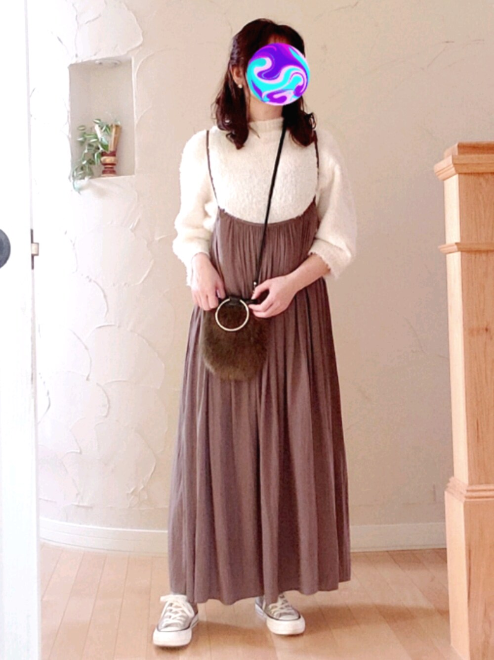 おはようございます🎵 訪問頂き、ありがとうございます 今日は キャミワンピに シンプルに白のセーターです😉