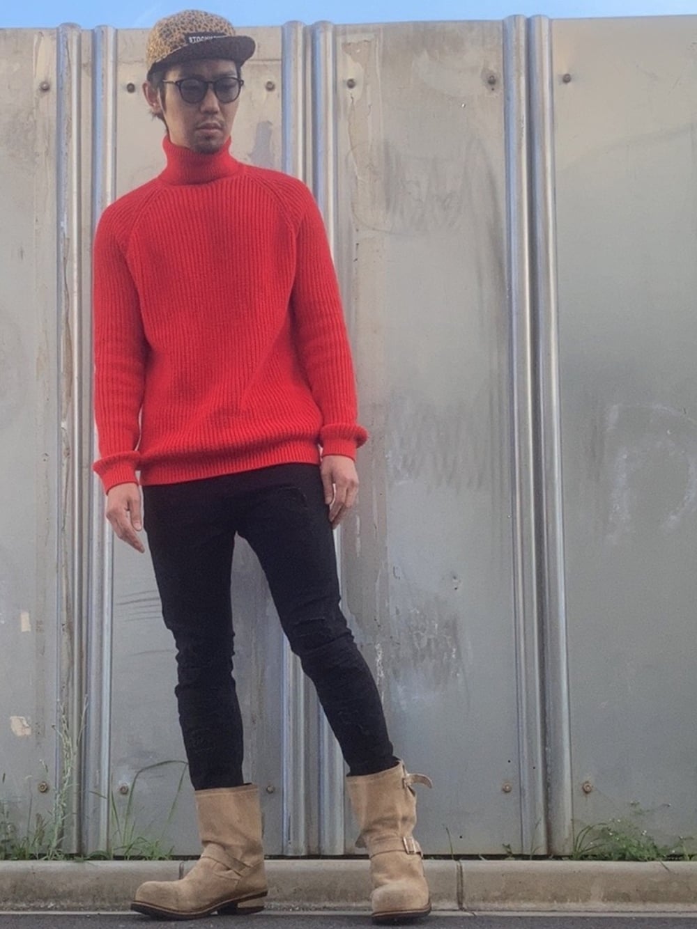 おはようございます! 存在感◎なニットだぜ! エンジニアブーツはこのパンツとしかあわせないのがちょっともったいないかなぁーとも思う今日この頃。