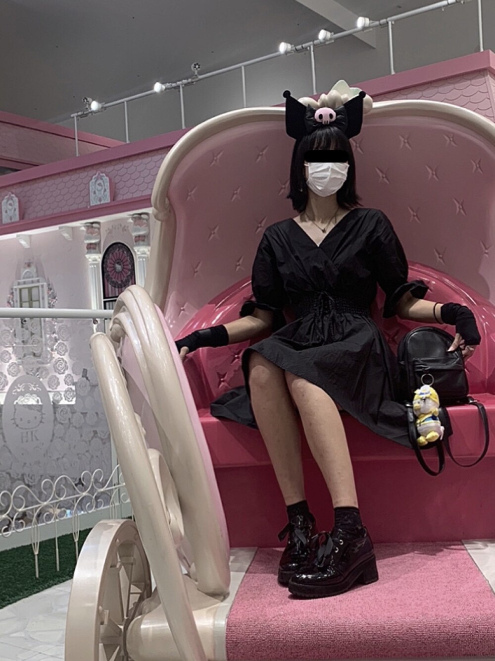 コスパがいいクロミコーデ🚬🖤 ピューロランドには少し女の子らしく行きたかったので、少し甘めで綺麗に見せてくれるワンピースに🌨... 靴も高見えします❕❕
