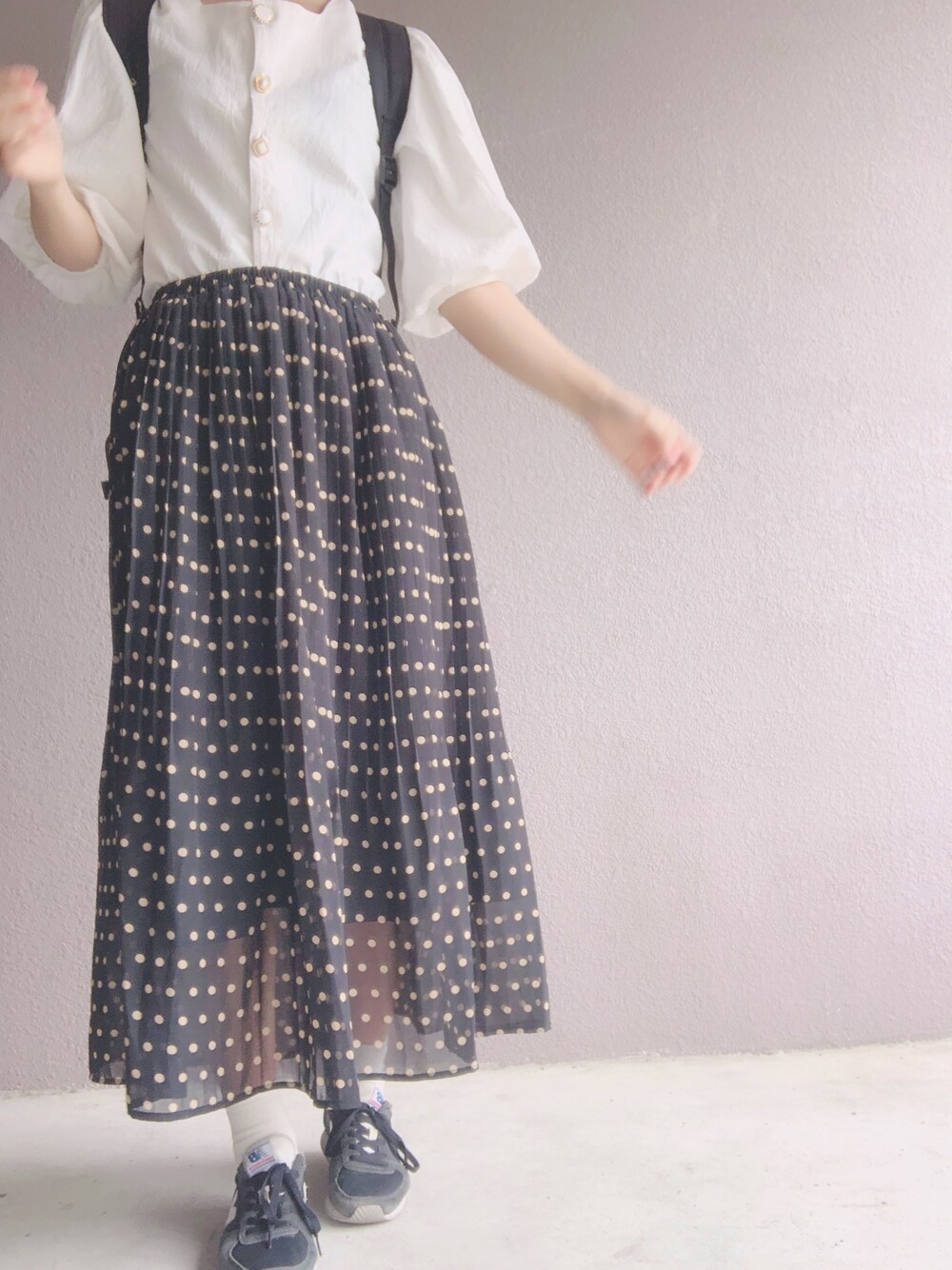 麺太郎のスカート「ドット&花柄アソートプリーツスカート」を使ったコーディネート