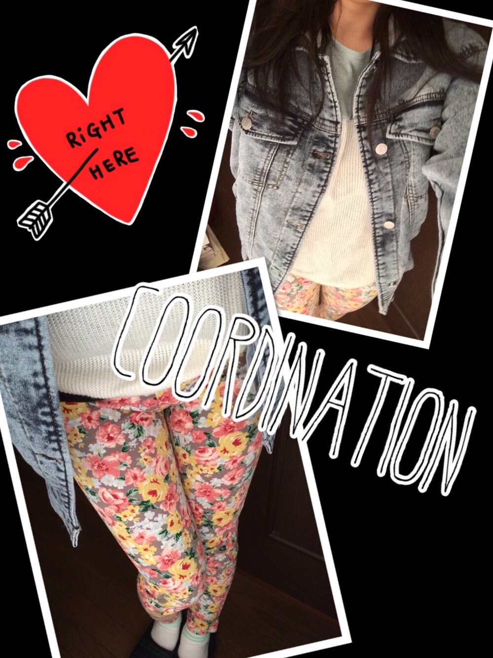 春らしい格好にしてみました〜 花柄のスキニーです Gジャンと靴下はスピンズです! そろそろ上着も要らなくなるかな。。?