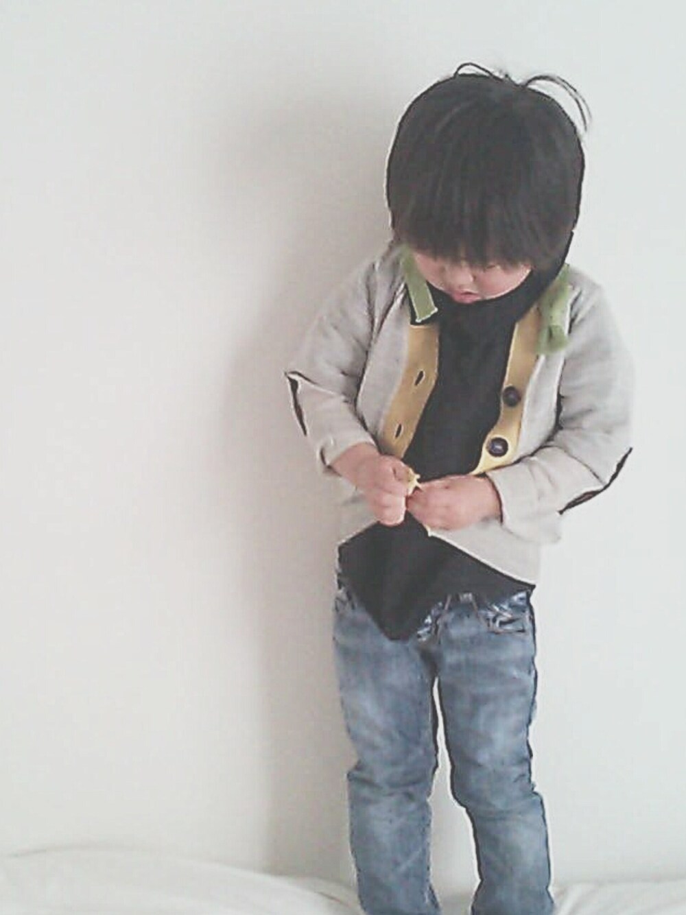 ボタンの練習中 shirt:oiseauenvol カーディガン:good evening デニム:fith