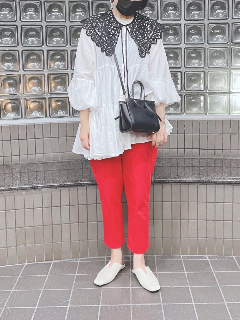 この秋は 赤パンツ 気になります。 Libra cueさんから届いたばかりのパンツ さっそくはいてみましたん❤️
