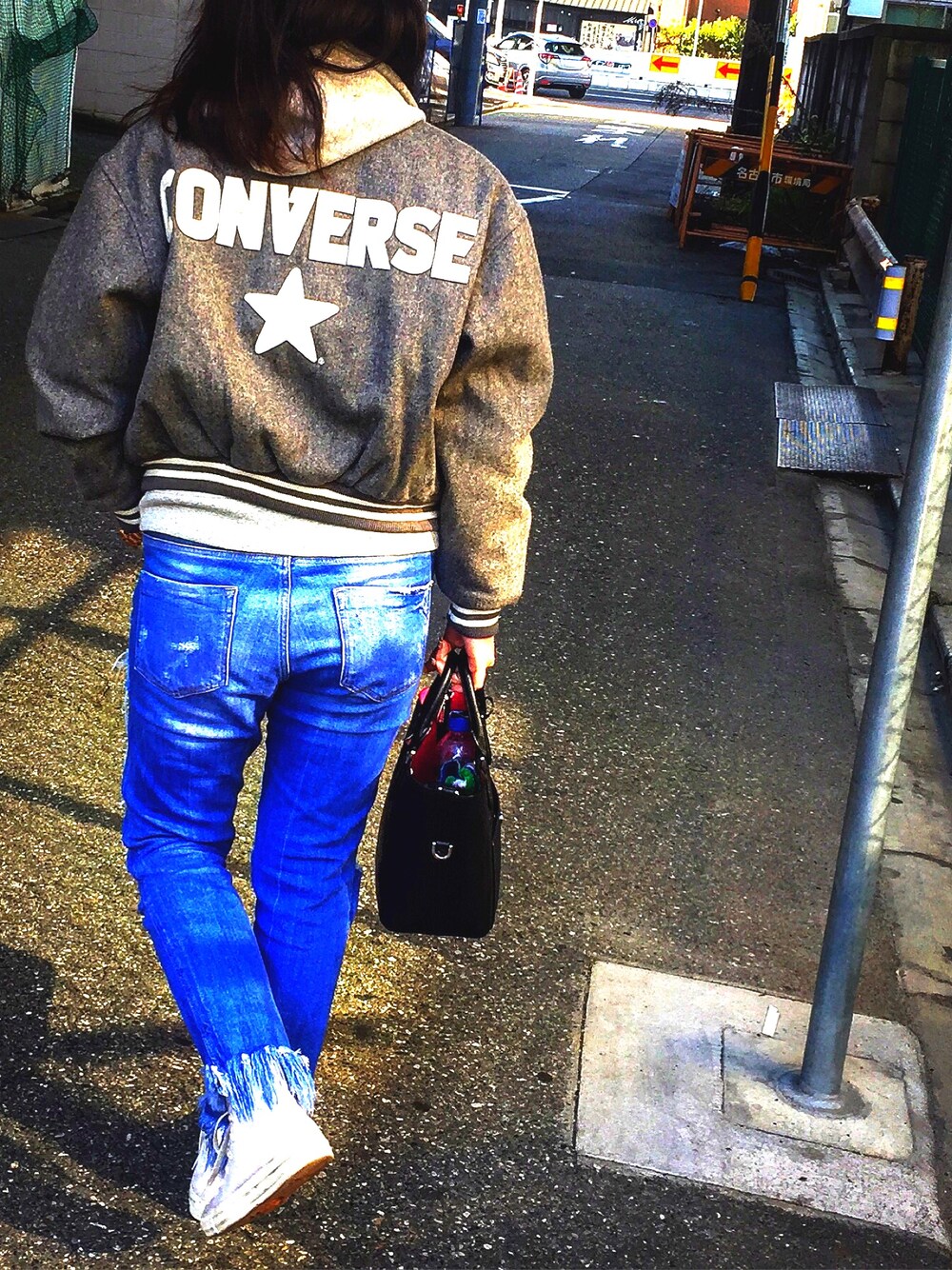 古着屋さんで買ったコンバースのジャケットがお気に入り❤️ コンバースのスニーカーは白しか持ってないから同じ色のグレーが欲しくなったよ🤘🏽😋
