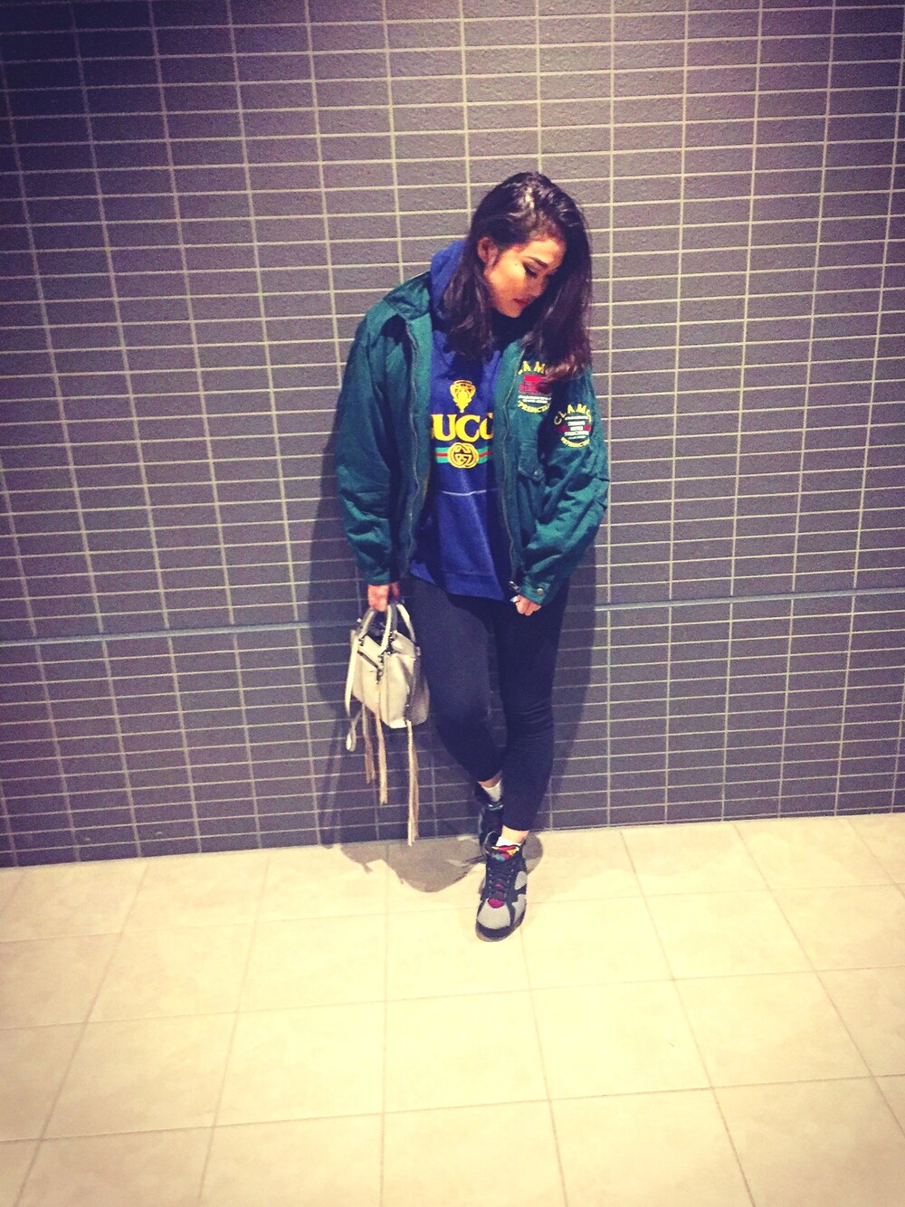 古着屋さんで買ったノーブランドのみどりのジャケットがお気に入り😋