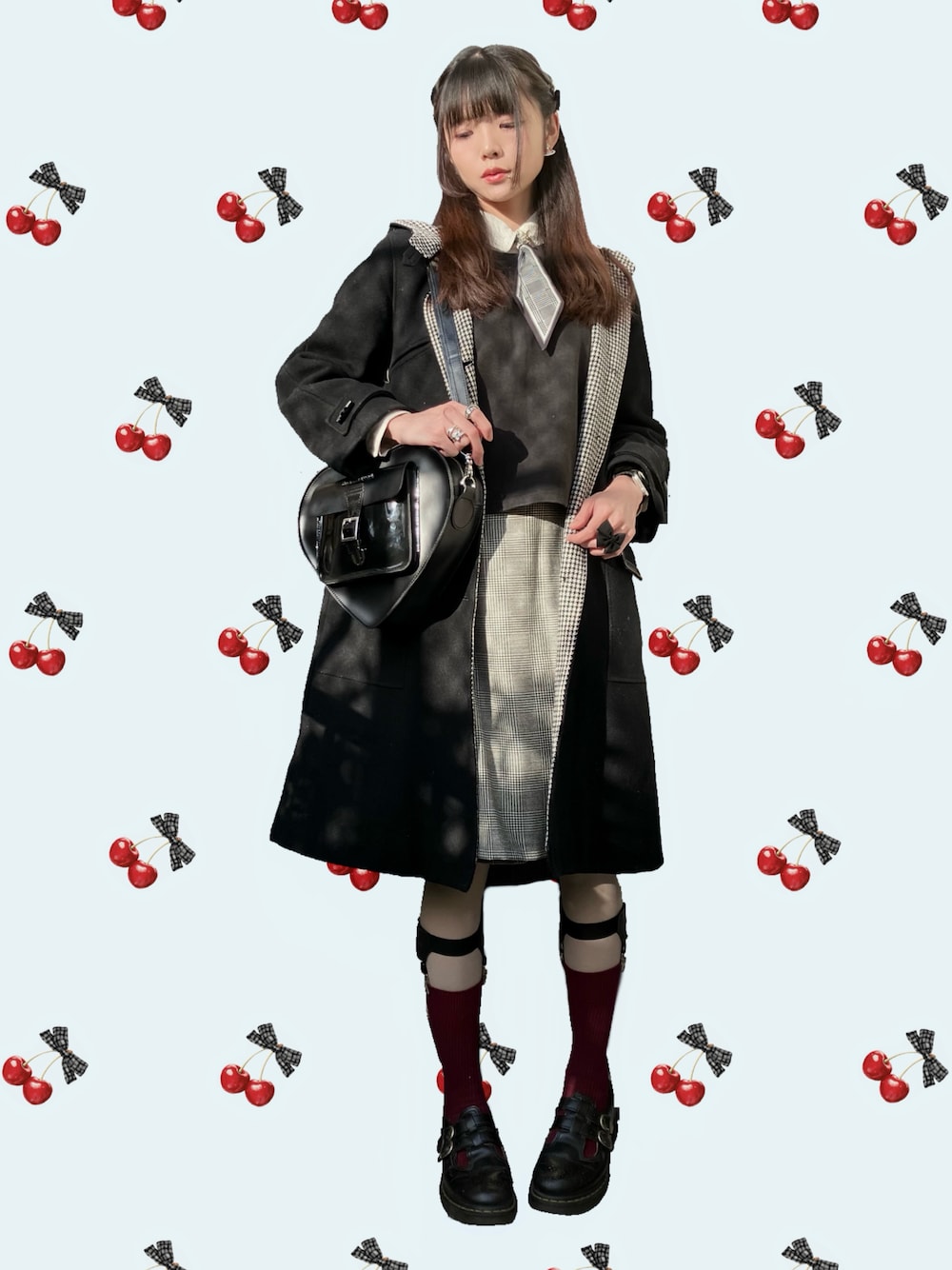 グレンチェックコーデ JaneMarpleのベレーと靴下の色を合わせようとしたのに出るとき忘れた…!! スカーフにウサギの指輪をつけました🐰せっかくなのでアップもちゃんと撮れば良かった。 コートはパリの古着屋で買ったもので、内側がチェック柄なのが可愛くて気に入ってます。ウール製でなかなか重く、歩くとちょっと暑い。運動。 マーチンのメリージェーンに赤ソックス合わせるのは友人がよくやっているのを真似。その友人に会うときは被ったら気まずいからやらない…笑 ☝️インナー+シャツ+プルオーバー+コート 👇フェイクタイツ(110D)+ドロワーズ+靴下