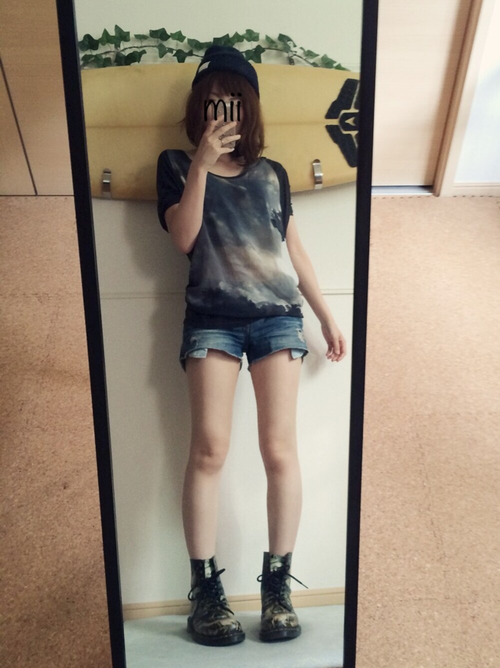 普通のコーデですいません|д・) このマーチンはわりと有名な絵画のプリントなんですが、肝心な題名忘れましたー笑 旦那の借りてます(●⁰౪⁰●) はずしとして使うのも好きだけど、 シンプルにクール系に合わせるのが1番好き。