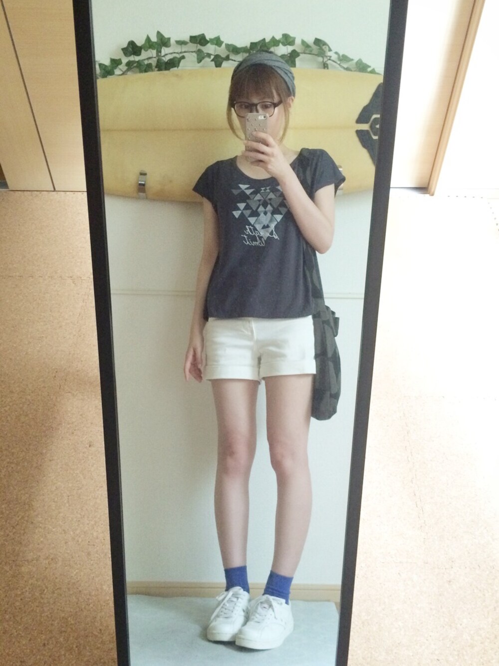 靴下:tutuanna 昨日のコーデ。 暑いのでTシャツ短パンヾ( -`д´-,,) 蒸し暑くて顔テッカテカなりました。 湿気いやん。