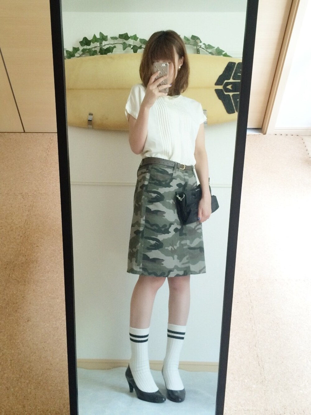 カモフラスカートをきれいめに。 MELROSEのブラウスは母からの貰い物。 裾が変わってるのにインしてるから見えない(๑¯ω¯๑)