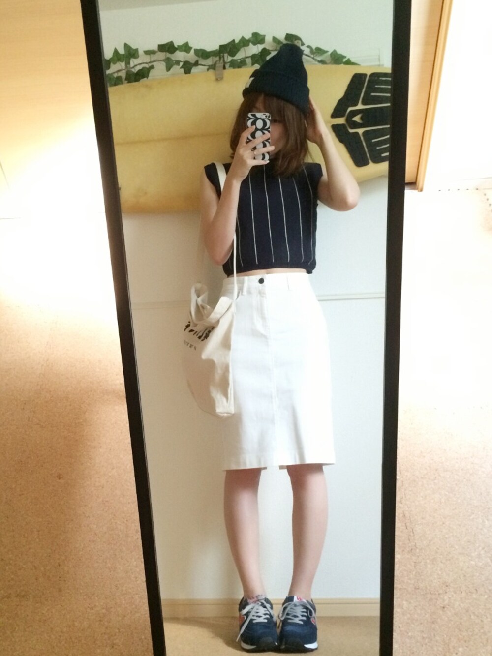 前載せたセットアップのトップスでコーデ。 ネイビーと白でまとめました。 まとまりすぎた感満載ヽ(*´∀`*)ノ