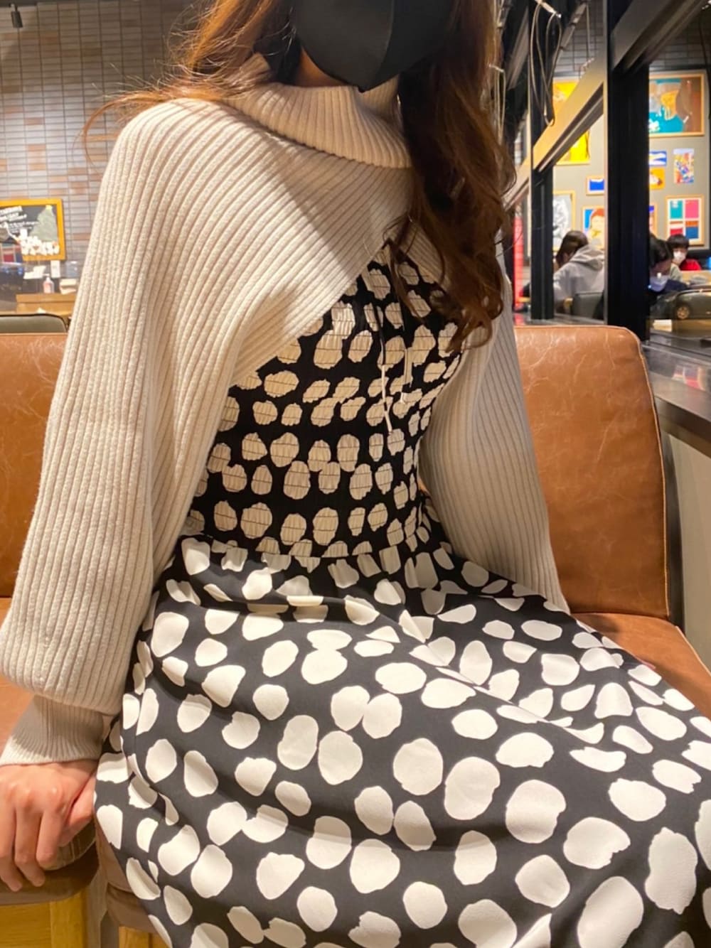 お気に入りのワンピースに可愛いニットを合わせてみました💕