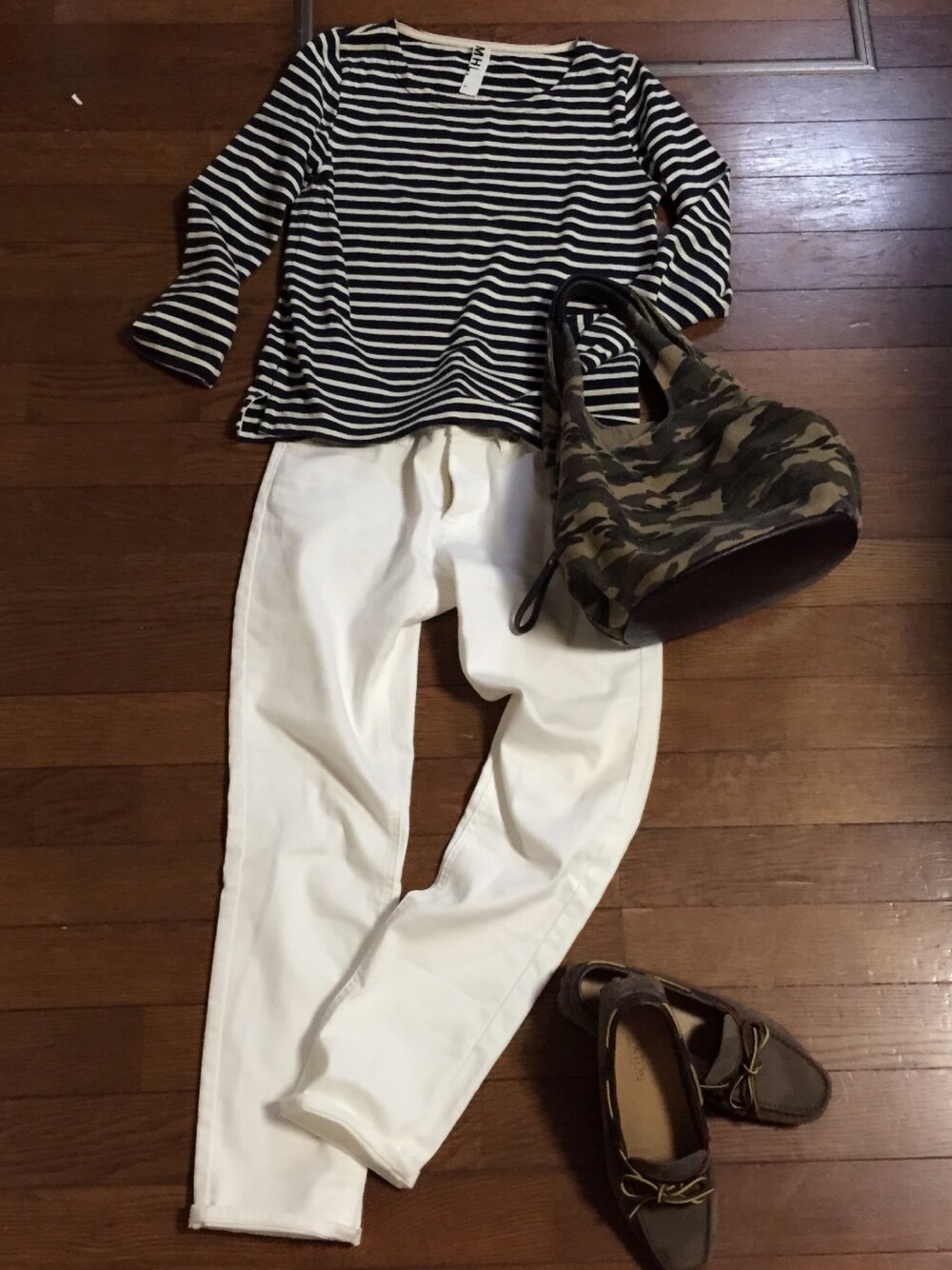 パンツ*無印良品 靴*Tradingpost(STOKTON) バッグに合わせて ドライビングシューズも スエードのカモフラ柄で お気に入り♡