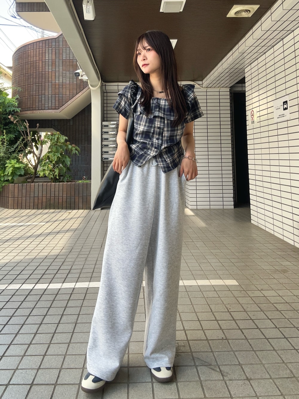 さわち / 小泉 沙和のシャツ/ブラウス「チェック柄オフショル半袖ブラウス[大人 カジュアル]」を使ったコーディネート