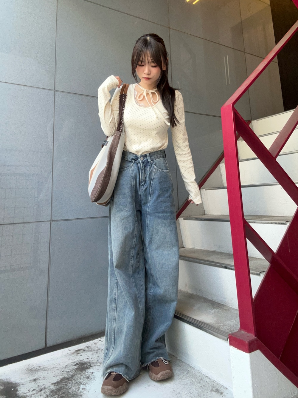 ドットのリボントップス着回し力高くて最高🥹🫶🏻
