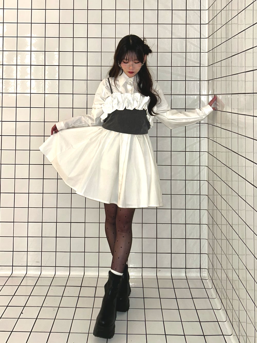 さわち / 小泉 沙和のTシャツ/カットソー「bi-color frill bustier / 配色フリルビスチェ」を使ったコーディネート